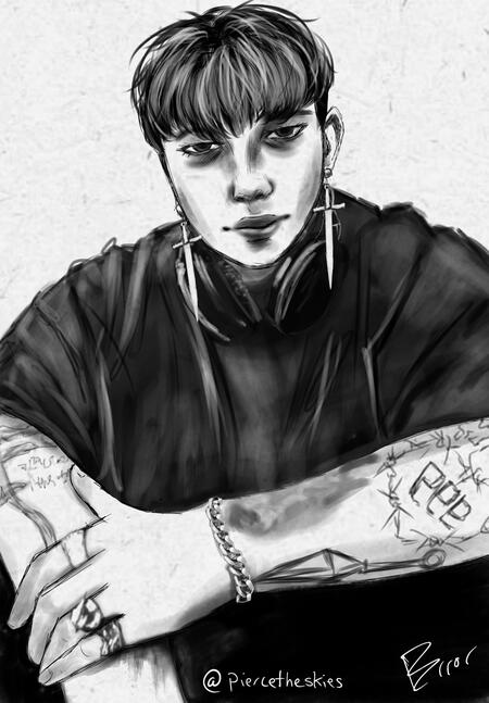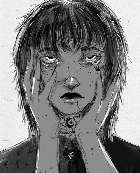 The eyes are the soul's reflection; the beauty of the nose shapes the face; the mouth speaks untold desires. Using the medium digital paintings to create back-and-white semi-realistic portraits.